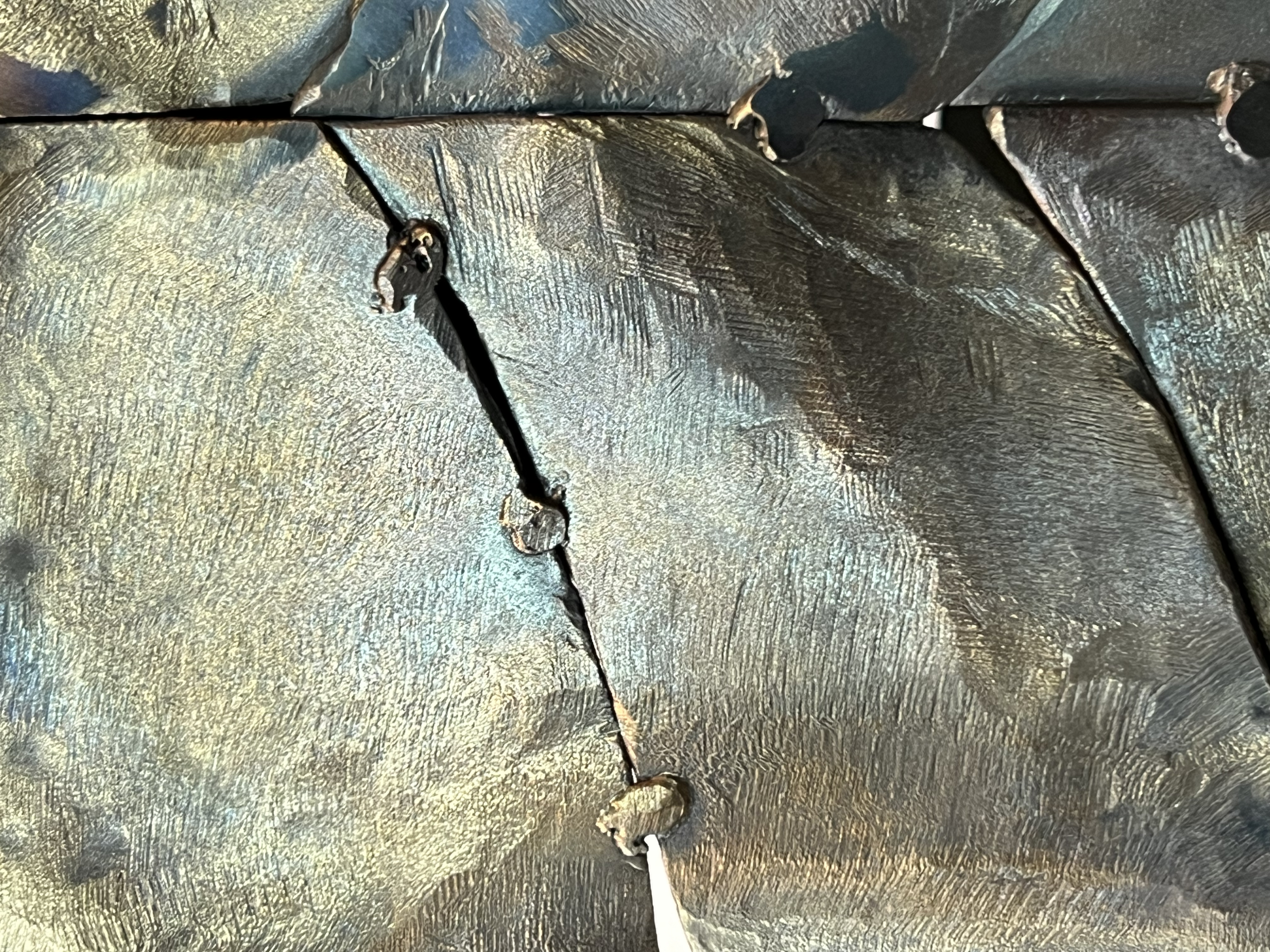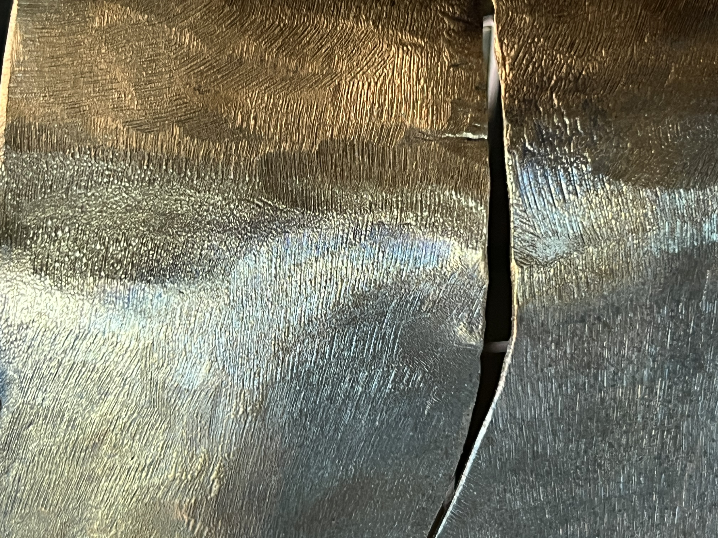 he who stands true beside her aluminum, welded2025 Welded shut in the process of creation, this suit of armor no longer protects; it becomes a vessel of tension, revealing and containing all at once. Its rigid form gestures towards the memory of flesh: an echo of a body gone, but never forgotten.